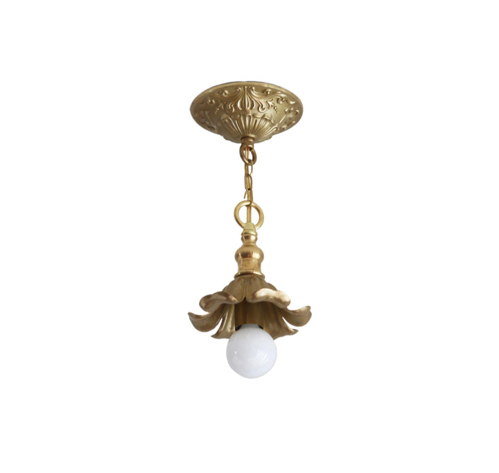 Brass Pendant light with flower shape lamp holder, Classic brass pendant light